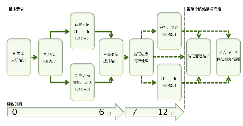 在专业人才培养方面,香港国泰航空(Cathay Pacific Airway)的做法则是为各线条业务人才绘制完善的学习地图以帮助员工发展。例如针对机场部员工,在其新进公司时将接受公司全体新员工入职培训,之后进入机场部部门入职培训,待员工定岗后会接受岗位技能学习与考核认证,半年见习期结束后员工将获得卓越服务技能的提升培训。如此随着员工的职业晋升,不断针对性地提升和完善员工的能力水平,使人才培养贯穿员工成长的每一个重要环节。
