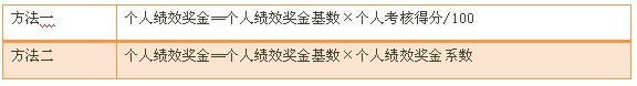 “绩效奖金的计算越简单越好,而且要直接到具体的个人,最好是员工自己知道得了多少分就能算出得多少钱。”于是,人力资源部在绩效奖金的设计上通常会采用以下两种方法(见表3):
