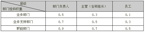 根据不同级别人员对部门整体业绩的影响程度,设置不同的挂钩权重(见表5),从而解决个人奖金与部门整体业绩挂钩的合理性问题。