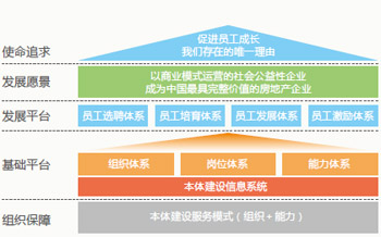 在绿城看来,“人力资源管理”这个概念,更多的把人定位为一种资源和工具,目的是通过其获取成果,这与绿城把成就员工作为第一使命的价值观是不相符的。鉴于此,绿城在1997年提出了“本体建设”这个概念,把人力资源当做一个“本体”来认识和描述,作为绿城发展过程中一条重要的脉络推进。