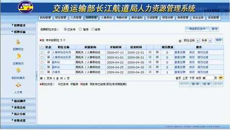 2008年开始,宏景软件在全局范围内启动了长江航道局人力资源管理信息系统的一期建设工作。目前,全局已建立起了统一的人事信息库,实现了局机关与各二级局多种年报的自动生成、汇总工作,以及网上内部招聘,并且在局机关范围内开展了培训管理、薪资管理、保险福利、领导决策等人力资源管理业务。各项实施如期圆满结束,应用成效较为显著: