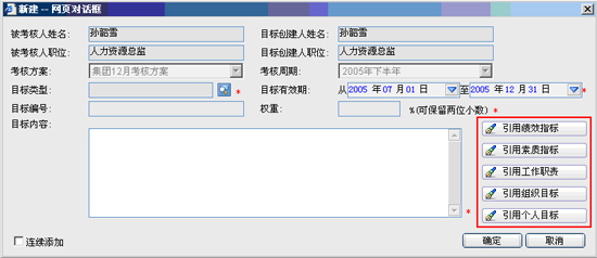 上级给下级下达绩效目标时,可以从企业的绩效指标库,或者从职位说明中引用指标。也可以直接录入建立新指标。