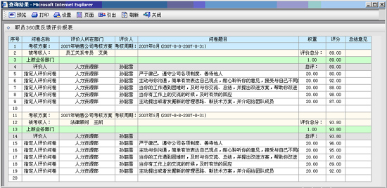 360度问卷打分完成后,e-HR系统可以自动进行分数统计,并且可以通过系统内置的统计分析报表,从多个角度分析了解360度评估情况。