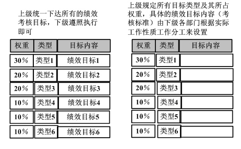 多种不同绩效目标分解下达方式的框图: