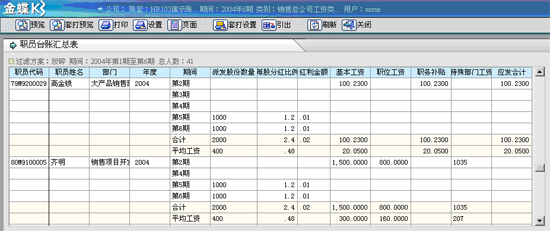 有时候可能需要查看多个员工、或者某个部门的员工的工资合并台账,也就是能够生成台账汇总表。下图是台账汇总表的示例: