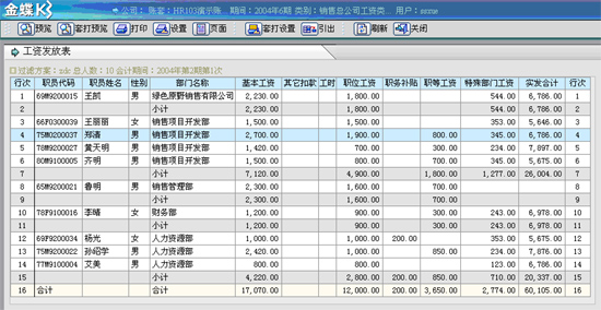 金蝶K/3HR系统的薪酬管理模块能为您提供如下六大重要报表的打印及分析功能: