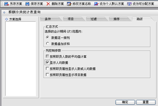 可以在“高级”页签中设置汇总方式,以及其它控制参数: