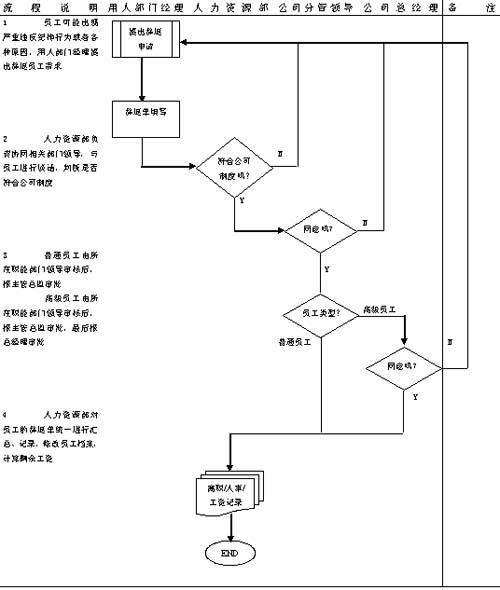 备注: 以下标准流程在金蝶K/3HR系统中,可以通过“工作流”技术,固化业务处理流程并及时通知到相关责任人。