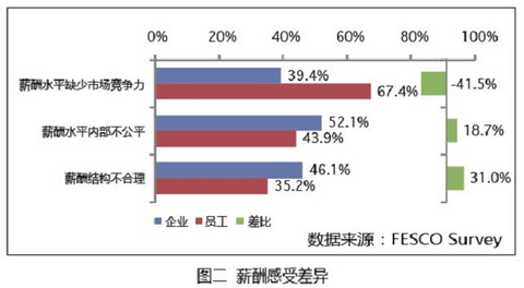 通过调查可以认识到,由于企业和员工的出发点和目标不同,对薪酬、福利、绩效的看法可能会出现很大的差异。当然,并不能否认企业处于快速变化的市场环境中,未来的不确定性导致在整体薪酬体系的设计上偏向主观和保守;不能否认由于员工信息不充分,或者只关注更高的薪酬信息,导致其判断和预期的偏差。不过我们仍然应该努力去缩小企业和员工之间在想法上的差异,因为差异越大,意味着员工心理的不平衡感越强,而这直接关系到员工对工作和公司的认同,关系到其是否还会继续留在公司工作,而且是全身心地投入工作。