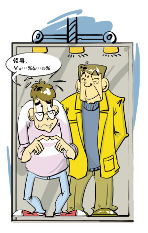 万一躲不过去怎么办?“每天早晨上班等电梯的人多,经常能碰到单位不同的领导。我一般很简单地打个招呼;进入电梯后,问领导去几层,帮他摁电梯层数。如果楼层运行较低的话,就不再交谈;如果楼层比较高,一般就是打过招呼后,很恭谨地看着地面。”小张说,也不知道再怎样去跟领导讲话,就“他不说咱也不说”。但不管怎样,内心会有些小紧张。