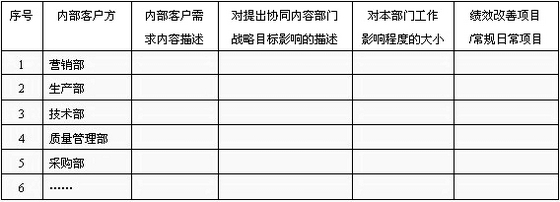 横向协同则可以通过内外部客户需求分析表来完成。在当今强调以客户为中心的时代,客户的需求就是目标,实现和满足客户的需求,就是在创造价值。内部客户也是客户,价值链流程中下游部门要求什么样的服务,上游部门就应该提供相应的服务。各部门和平行岗位就是在价值链上下游的各个环节中创造不同的价值,每个环节所创造的价值方向要一致,最终满足客户的价值需求。
