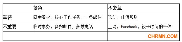 Stephen R Covey在《高效能人士的七个习惯》中“要事第一”这一章节中,介绍了时间管理优先矩阵——一种基于事件重要性和紧迫性的图表,可适用于任何任务。典型的时间管理优先矩阵如下所示: