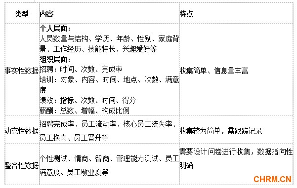在日常的人力资源管理中,有哪些数据可以被利用呢?下面根据数据收集和使用的特点分为以下几种类型: