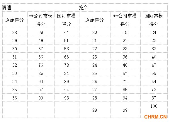 测 验所得的原始数据,只能表明受测者的得分,却并不能表明该分数在人群中实际的水平如何,即使使用一些国际测验会提供转化后的分数,通常也是在全球的常模下 的得分情况,如果企业想要知道受测者在本企业或者本行业的状况,则需要获取本企业或本行业的常模,方能得出比较准确的水平。下面是一个企业的心理测验成绩 在全球常模和自己企业常模下的不同得分情况,可以看出,同一个分数,当与不同的常模做比较的时候,所得的分数是不同的,代表的水平也是不同的。