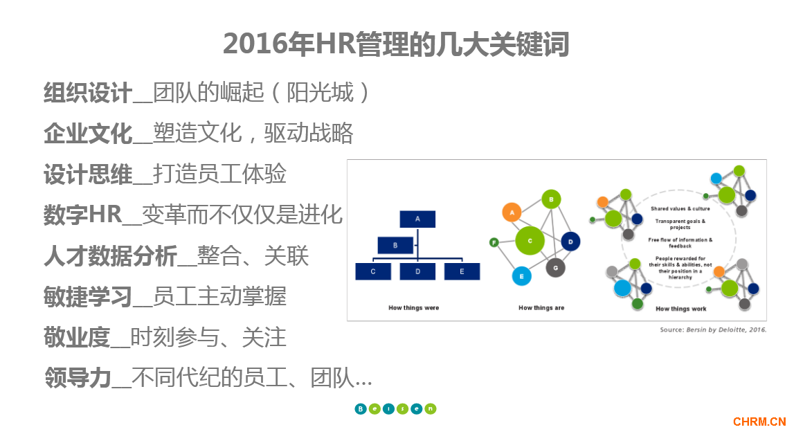 我们的内部专家团队在一起沟通的时候,有一个感觉,现在到未来十年,中国企业当中人力资源体系中,OD将会是非常缺的一类人才,如果能够在这方面有所建树,你对企业的价值会非常大。所以第一个关于人力资源管理领域的关键词就是组织、设计。
