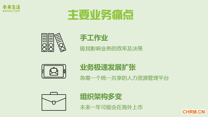 然而,随着众多电商巨头纷纷步入生鲜电商行业,并逐渐采取线上线下融合运营的方式开展竞争,生鲜电商的生存空间被迅速挤压,传统的商业模式受到了激烈的冲撞。于是大家纷纷在布局生鲜社区的同时开始积极开发自己的特色产品。作为早期的生鲜电商,本来生活虽然依旧走在行业前沿,竞争优势似乎并不明显。为了在市场上再次占领先机并打造行业领袖形象,本来生活决定从企业运营与人才管理方面入手,利用先进的IT技术实现人力资本的现代化管理,获取人力资本市场的最新洞察,逐步打造本来生活的多元化发展战略。