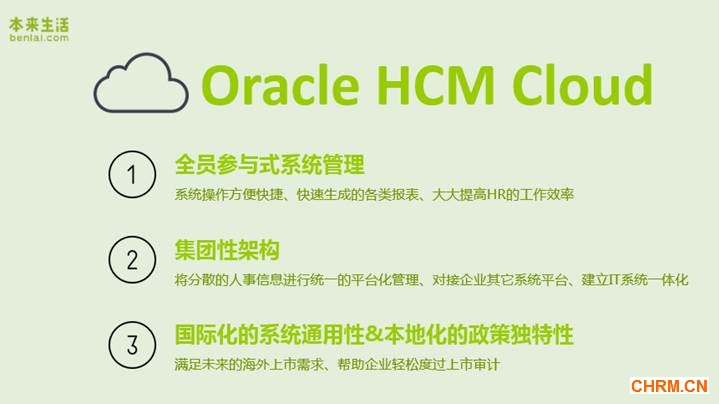 在本来生活人力资源部总经理张颖看来,他们选择Oracle HCM Cloud看中的是甲骨文领先的技术、对行业的深入洞察、丰富的最佳实践和以客户需求为中心的定制化功能,这些都为企业用户提供了非常完整的人才生命周期管理闭环。不但如此,Oracle HCM Cloud还提供了一个高度安全保障的工作平台。以上的一系列优势完美契合了本来生活迫切希望提高企业人才工作效率的需要,同时也符合本来生活在未来实现全球化发展的构想。