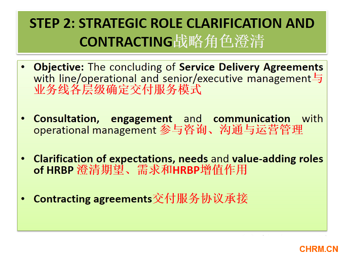 第四个阶段,要求部门经理和其他员工积极参与,也就是参与人力资源战略重构的主体是谁,要定义清楚参与人力资源转型的角色,建立转型的长效作用。