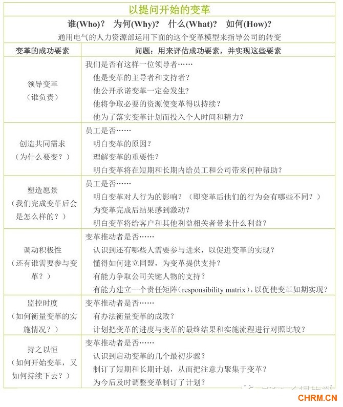 答案在于创建和运用变革模型(参见“以提问开始的变革”,其中列出了由通用电气公司发明并广泛使用的变革模型)。