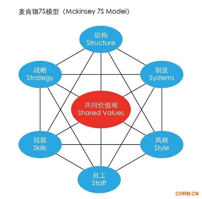 麦肯锡公司著名的7S框架则列出了公司架构的7个要素:战略(strategy)、结构(structure)、制度(systems)、员工(staff)、风格(style)、技能(skills)和共同的价值观(sharedvalues)。
