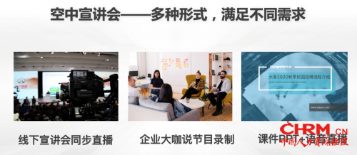 在疫情未得到有效控制之前,其实不仅仅是校招,企业社会招聘也可以利用“空中宣讲会”的形式对外发声。比如可设置某些热招岗位专场线上活动,邀请内部大咖分享工作体验等等,通过这一方式强化企业的雇主品牌,同步获取优质候选人简历。