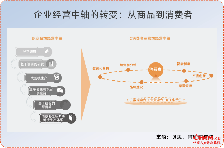 从以商品为经营中轴到以消费者为经营中轴。过去企业的经营和运作,都是围绕商品而展开的,其实质则是以企业为中心向消费者“推广”。今天的企业则必须要转型为以消费者为经营中轴。进一步看,流量不等于账号,账号也不等于一个个真实而具体的消费者。正如阿里巴巴集团董事局主席张勇所言,“数字化时代的新商业文明,本质是要回到人本身,立足开放共享,从关注流量、关注交易量,到关注客户、关注消费者,关注一个个具体的人,关注全社会的效益,关注共赢”。