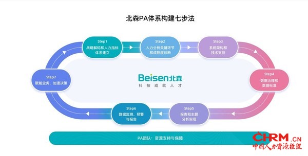在7步法之外,北森同时强调要重视PA专业团队建设。通常情况下,企业PA团队中,应该有一位战略分析师牵头,由企业的人力资源部门负责人HRD、HRVP、CHRO、或者是CEO来担当;其次,至少有一名HRIS,负责HR系统的建设和维护,推动流程规范和变更,负责报告制作和维护,第三方系统对接,需求对接,用户培训等。