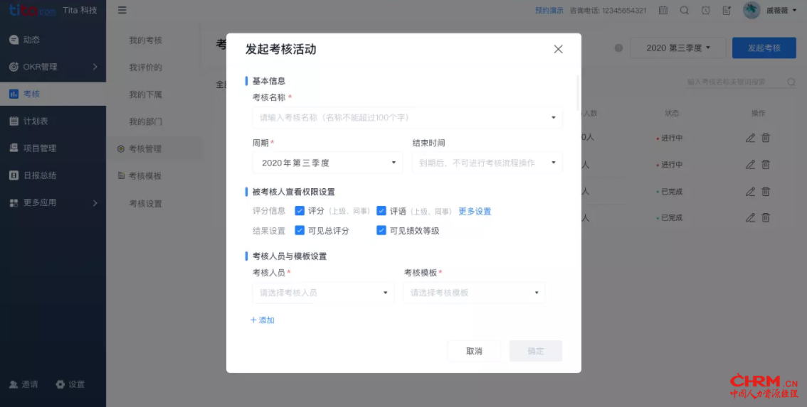 b.考核过程管控,实时了解当前考核进展,并支持提醒执行人、变更执行人、更改考核对象的分数及等级等多项操作。