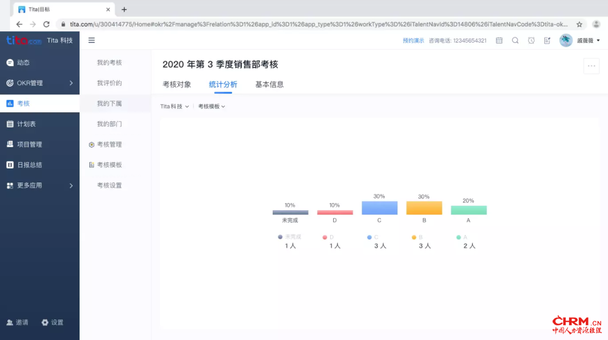 考核统计——自动汇总统计报表,查看绩效等级分布