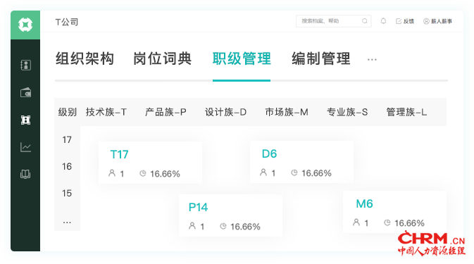 2.T公司的职级一共分成了17分级别,给员工提供了非常大的晋升空间,员工在企业中很长时间内都可以找到努力的标杆。正式入职的员工的级别会在4级别以上,这样设计一是可以让新入职员工感受到被认可;二是可以给HR预留出一些灵活空间,将需要纳入职级系统的兼职人员、实习生放在1-3级别中。所以,级别订立的数量决定了员工的晋升空间,级别匹配时要能覆盖所有用工形式。