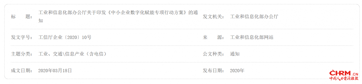 工业和信息化部办公厅关于印发《中小企业数字化赋能专项行动方案》的通知