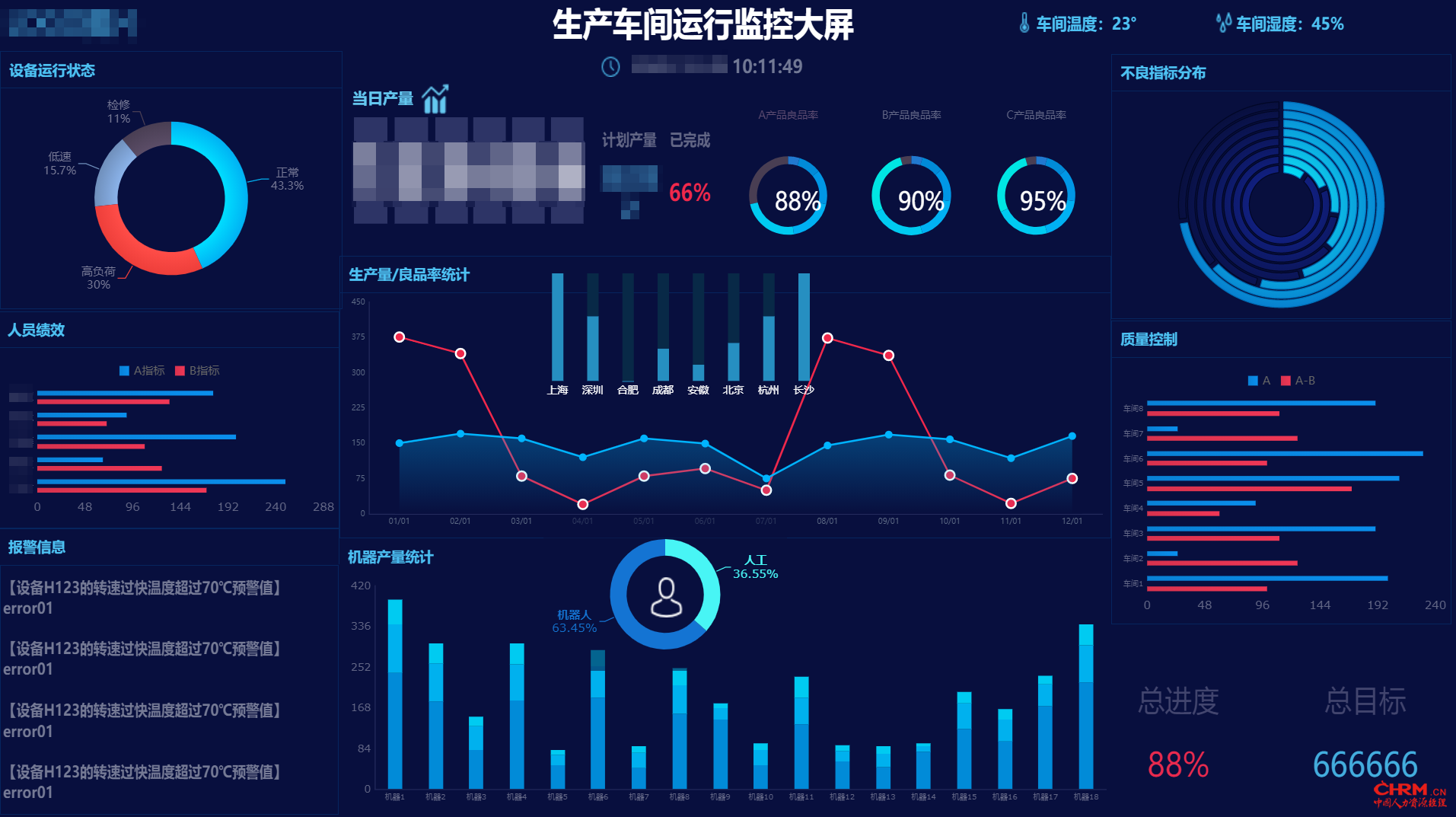 图2 某公司数字化生产车间运行监控大屏(引自帆软客户)