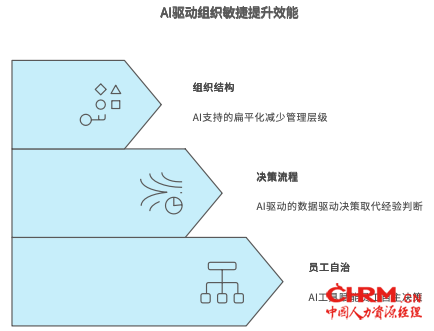 AI智能体通过重塑组织结构、优化决策流程、赋能员工自治三方面推动组织敏捷化,实现人均效能的显著提升。