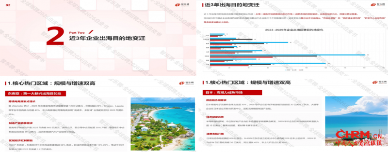 本篇章从两大核心维度解析出海目的地变迁趋势:一方面梳理东南亚、日本、欧洲等企业出海核心热门区域的分布特征、产业优势与出海机遇;另一方面深度剖析出海目的地从市场端、供应链端、能力端发生的 3 大核心结构转移趋势,清晰勾勒中企出海从 “市场追求型” 向 “供应链全球布局”“研发中心全球布局” 多维度转移的发展脉络,为企业选择出海目的地、制定区域化招聘策略提供核心参考。