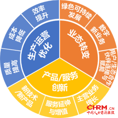 生产运营优化类价值效益相应的业务体系本身一般不会有本质性的转变。主要基于传统存量业务,价值创造和传递活动主要集中在企业内部价值链,价值获取主要来源于传统产品规模化生产与交易。生产运营优化类价值效益主要包括效率提升、成本降低和质量提高等方面。在效率提升方面,主要包括提高规模化效率和多样化效率;在成本降低方面包括降低研发成本、生产成本、管理成本和交易成本;在质量提高方面主要包括提高设计质量、生产/服务质量、采购及供应商协作质量和全要素全过程质量。