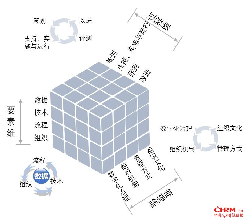 三是以能力单元承载不能或不必再分解的新型能力,根据新型能力和相应的价值效益需求,从过程维、要素维、管理维三方面系统策划和构建能力单元。过程维包括策划、支持、实施与运行、评测和改进等子维度,明确能力建设、运行和优化的过程管控机制;要素维包括数据、技术、流程和组织等子维度,明确能力建设、运行和优化的系统性解决方案;管理维包括数字化治理、组织机制、管理方式和组织文化等子维度,明确能力建设、运行和优化的治理体系。