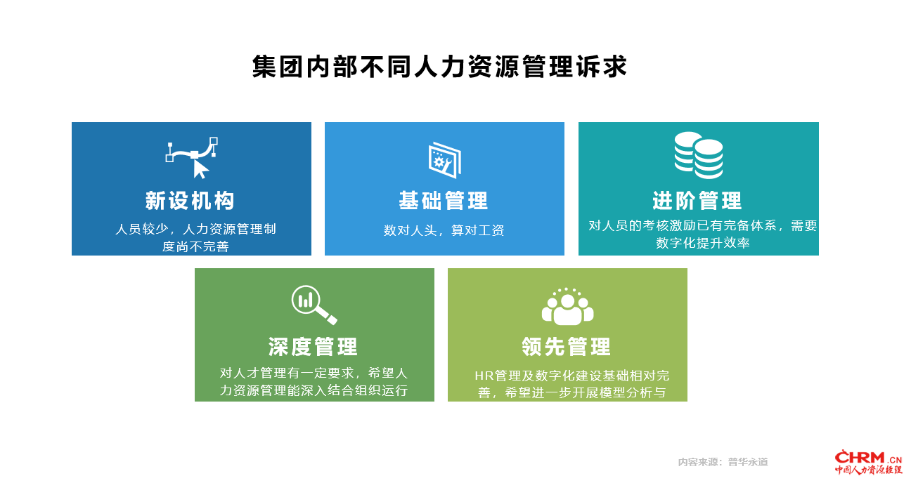 - 管理层面: 下属企业众多,业务发展与管理水平程度不一,人力资源管理成熟度也有差异,如何弥补管理不平衡是人力资源管理数字化转型需要解决的问题。