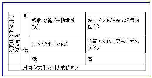在企业合并中,所碰到的问题是,来自于不同企业(文化)的员工被期望一起工作、一起讨论并解决复杂的战略性和操作性的任务。要想把一种没有得到员工认可的新的企业文化强加到一家公司是非常困难的。下面分析一下员工对不同企业文化吸引力的认知度,对于整个企业的整合过程所产生的影响: