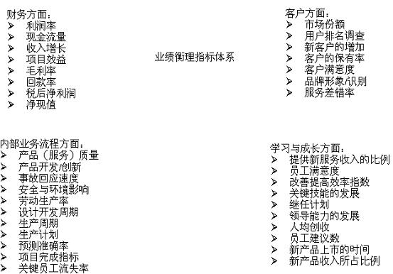 企业财务性业绩指标,能够综合地反映公司业绩,可以直接体现股东的利益,表明计划与设想是否实现对提高利润有很大的贡献。因此,它一直被广泛地应用来对公司的业绩进行控制和评价,并在平衡计分卡中予以保留。常用的财务性业绩指标主要有:经营利润率、现金流量、收入增长、项目效益、毛利率、回款率、税后净利润、净现值等。