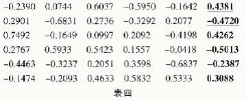 该相关矩阵的特征向量矩阵如表四。