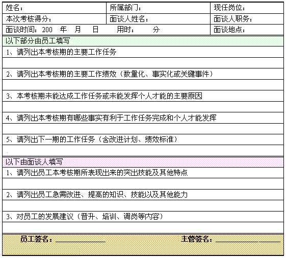 从以上表格所包含的内容我们不难发现,辅导面谈与日常的绩效辅导的意义相一致,都在于:不论绩效考核的结果如何,辅导面谈的结果不仅有助于下一阶段的绩效提升,而且为上下级双方明确了各自的工作任务,增进了员工进步的信心。这样,即使员工的绩效考核结果不佳,相应得到的物质回报较少,但员工至少都从绩效考核中得到了未来改进的希望。这对员工而言,同样相当于收到一份珍贵的礼物。