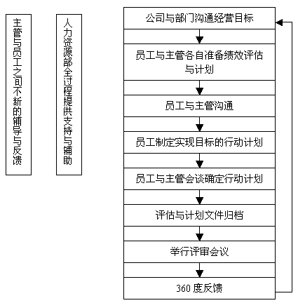 从以上“绩效管理流程”图中可以看出,员工和管理者共同参与了绩效管理。这种全员参与式管理,通过管理者及时与员工沟通,使员工明确自己的工作目标和发展方向,工作效果因及时得到主管的认可而富有工作的满意感和方向感。另外,要想做好绩效管理,还必须做好绩效计划和绩效指标确诊工作,以及考核期时的结果反馈工作,即将绩效考核放在完整的绩效管理过程中,并需要其他工作的共同配合,如沟通、计划、分析等。