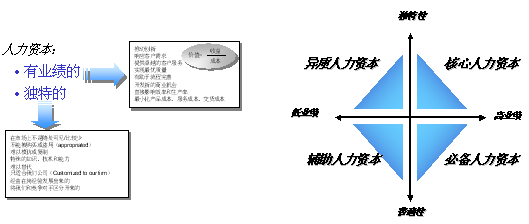 人力资源工作要抓重点,在绩效考核结果的应用上也是如此。首先我们通过绩效考核找出优秀的员工和差的员工,并根据人力资源或知识和技能的可替代性将这些员工分为核心人力资本、异质人力资本、必备人力资本和辅助人力资本四大类。根据每一类别的特点采取不同的人力资源策略。