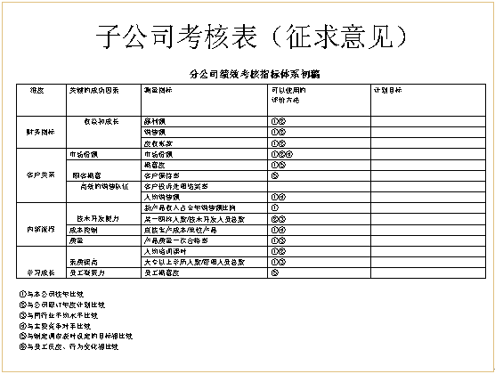 12、综合访谈结果和问卷调查结果,一致性高的指标作为分公司绩效考核指标,得到“表f:分公司绩效考核指标体系”,提交总经理办公会议讨论决定。