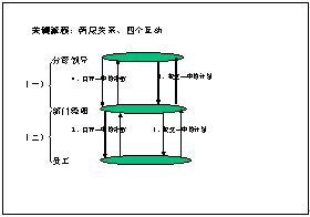 要分析考核流程中断的原因,就必须先提炼绩效考核的关键流程。我把电源公司的考核流程概括为“两层关系、四个互动”:两层关系就是分管领导和部门经理之间、部门经理和员工之间的考核关系;四个互动就是分管领导与部门经理之间的提交—审核计划、自评—审核分数、部门经理与员工之间的提交—审核计划、自评—审核分数。任何一方、任何一个环节都可能导致考核流程中断。