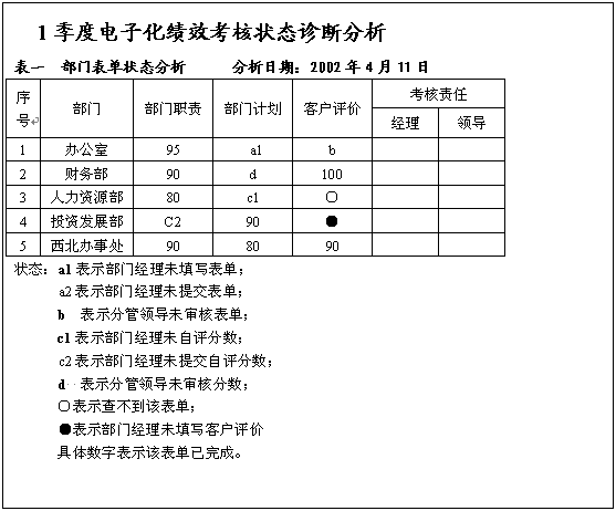 为了使通报显得有依据,如何把考核表单的状态清楚的表述出来当然需要考虑。从考核流程的角度,把表单可能存在的状态用字母标记出来,这样每个部门考核处于什么样的状态一目了然。然后,提醒负有考核责任的经理或领导去完成这件事情。