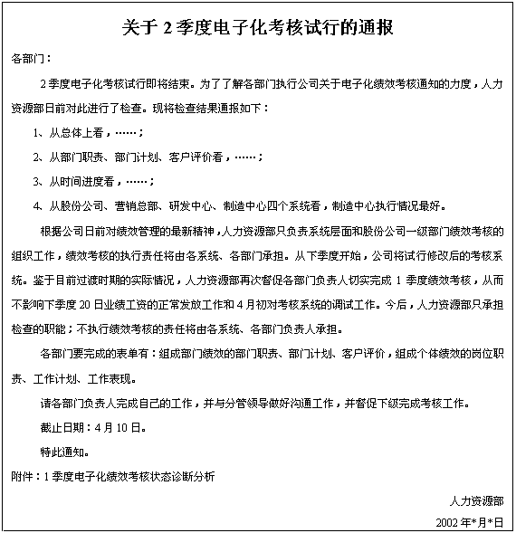 这是我在试用期结束以后对绩效管理实施过程中问题的一次分析。当时我的职位是人力资源部负责人。