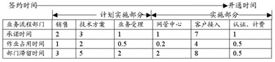 表1是某个商业楼宇接入业务的时间统计值,假定销售经理在合同签订之日就开始填写订单,根据公式计算得如下值: