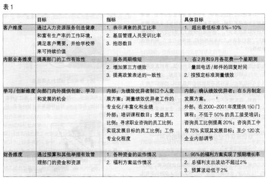 下面,本文以美国康奈尔大学人力资源部门使用的人力资源记分卡为例(见表1),对以上各个维度的内容做进一步说明。