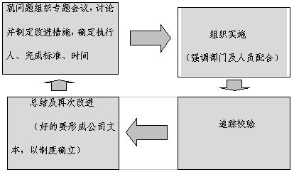 2、员工主要工作:充分利用领导赋予的权利及自己综合能力,在团队力量下,学习“PDCA”绩效循环人类行为模式相关知识,并自觉运用到工作中提高个人工作成效。P:确定个人绩效目标,并在实施中对出现的问题制定相应纠正计划;D:实施绩效目标及纠正计划;C:日常检查,校验实施情况及纠正情况;A:总结,进一步提出改善措施。